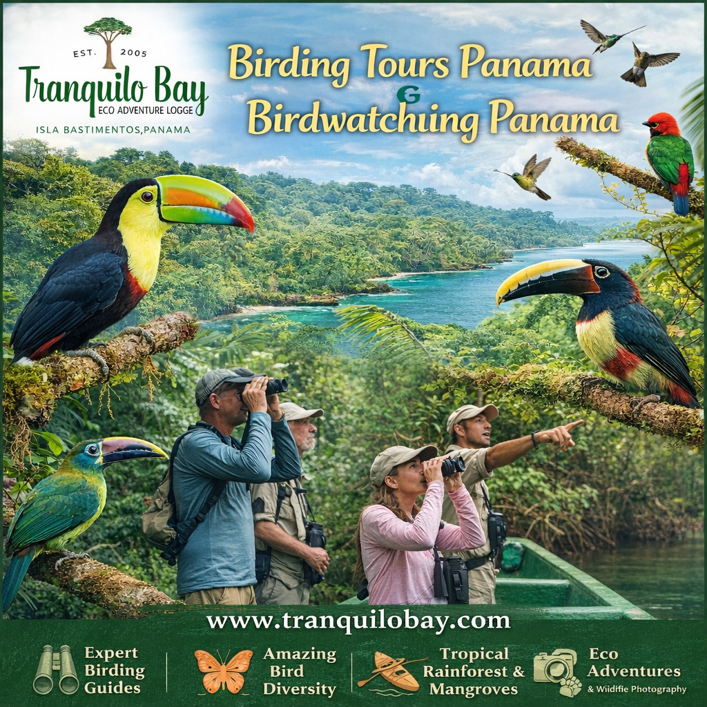 Experience unforgettable birdwatching panama at Tranquilo Bay. Enjoy guided birding tours panama, rich wildlife, and a peaceful eco-resort stay in nature.
